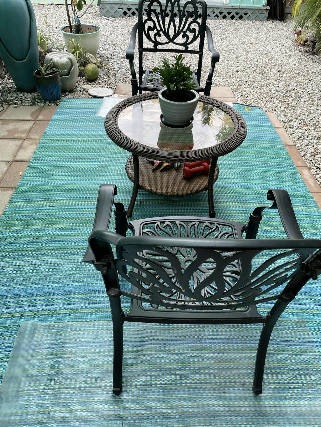 I order the Daisy Mad Mat in the aqua and green for our gazebo in Florida. The colors are perfect and I love the texture of the mat for or outdoor use! I have the very same rug at home in Michigan only in a different color, which I love! I have had that rug for about 5 years and it still looks the same, no wear and no color fading and a ton of compliments! I love this new one for here in Florida and am sure we will have many years of enjoyment with this bright new mat!
