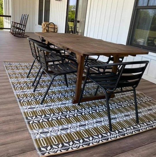 Love the outdoor rug. Works well in our space and delighted to know this company is using recycled material.