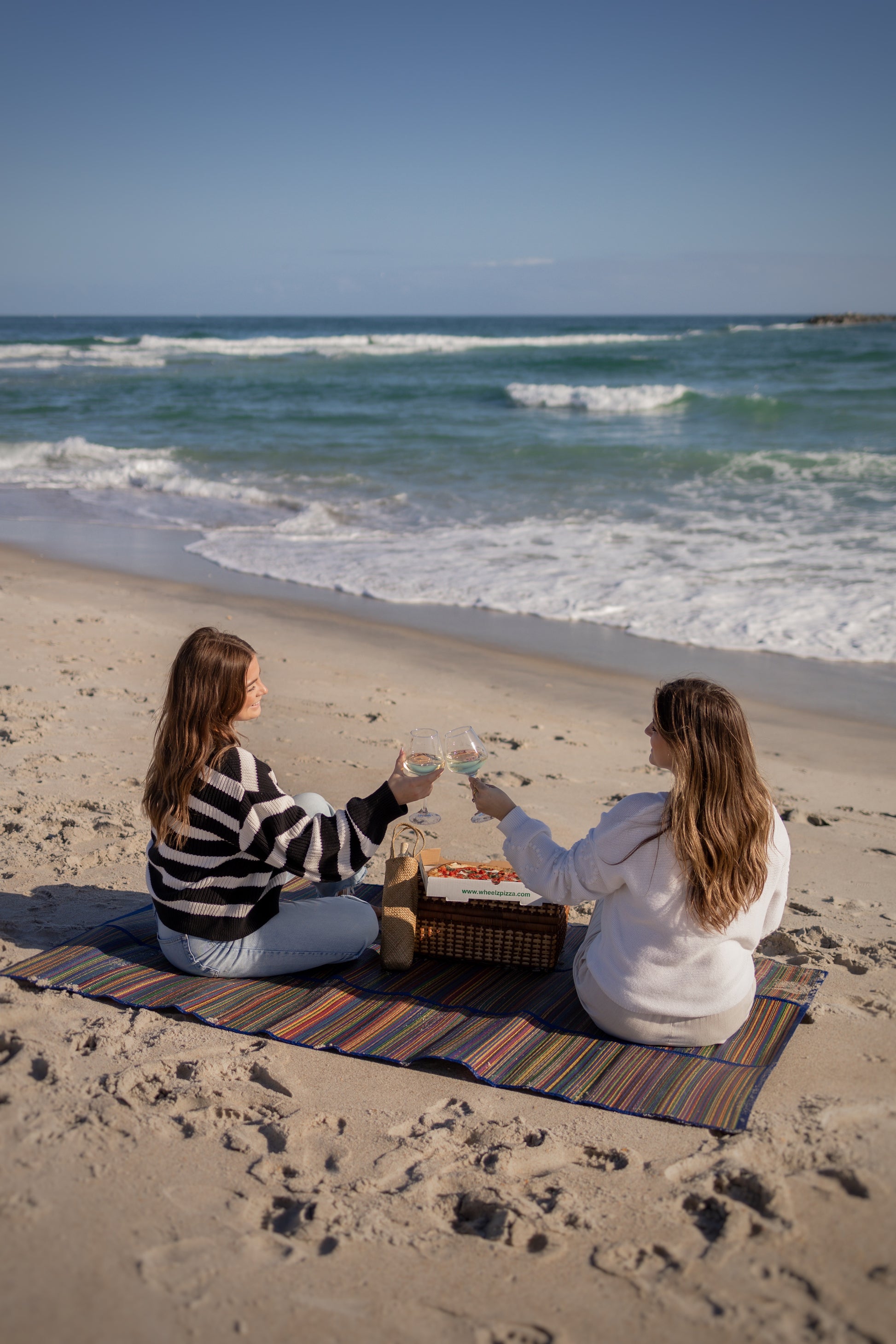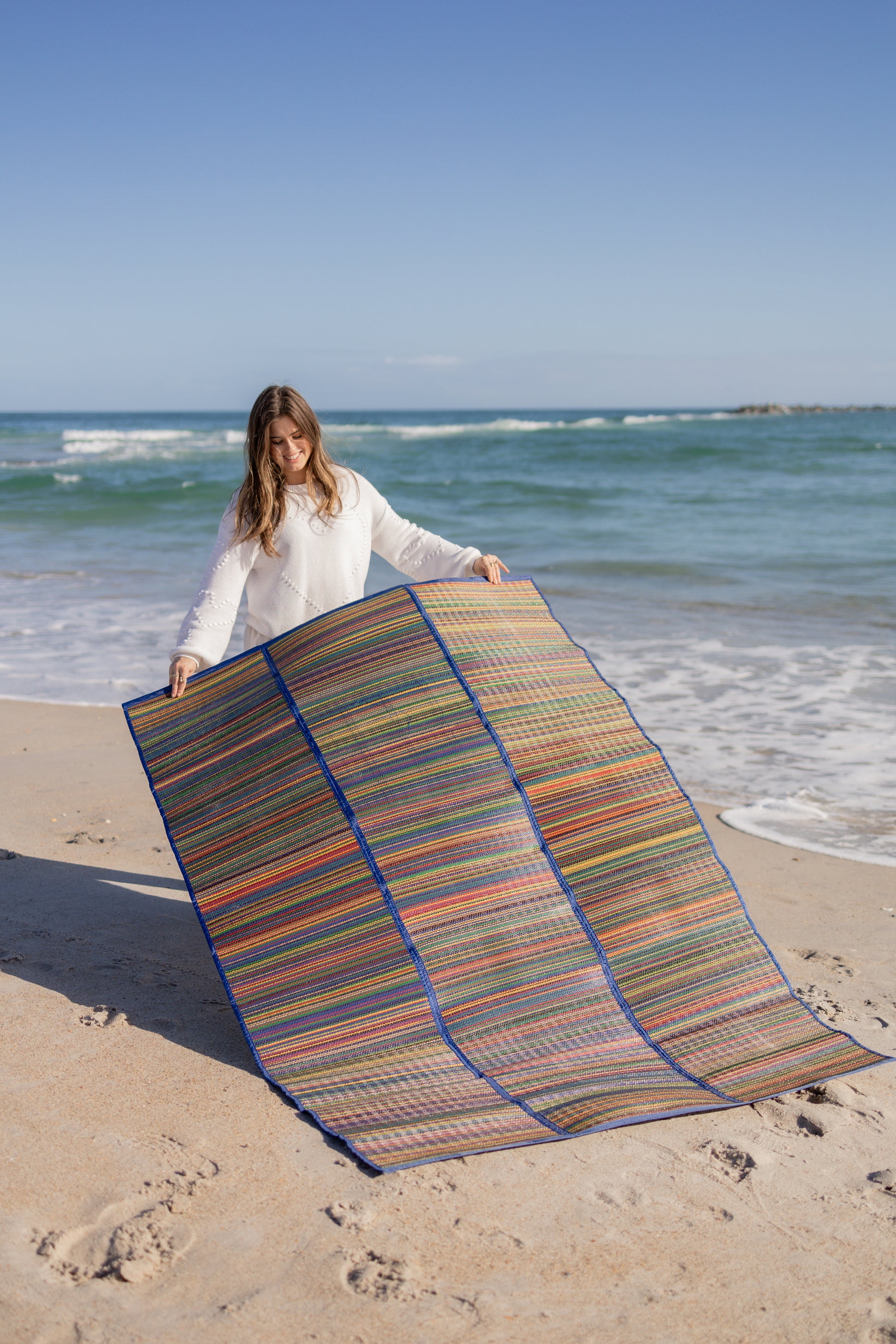 These fold-up blanket-sized Party Mats, made from our Mix design are perfect for the beach, picnics, sporting events and concerts. Available in Earth tones and these vibrant Rainbow gradations, these rugs can make any space come alive.